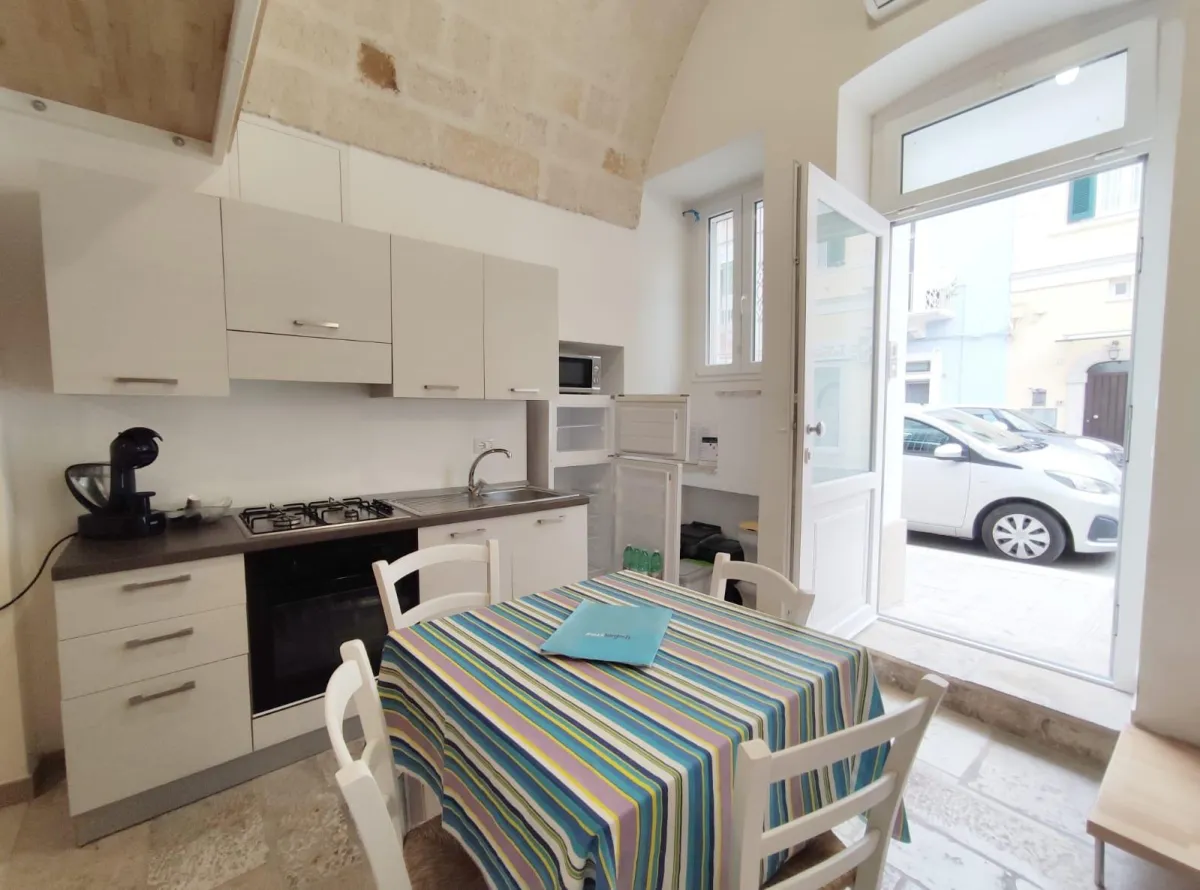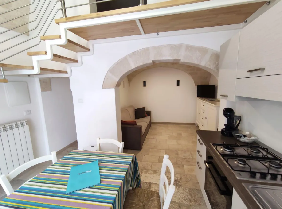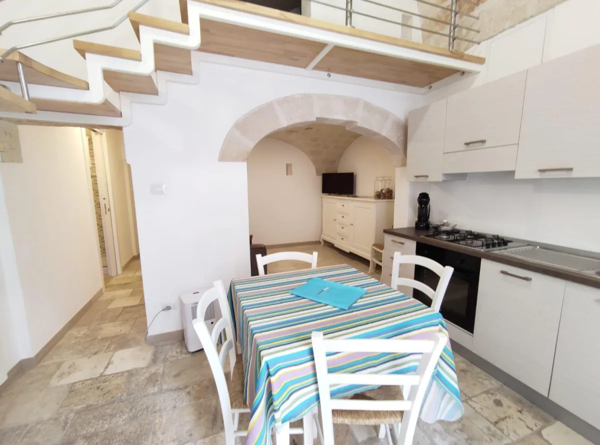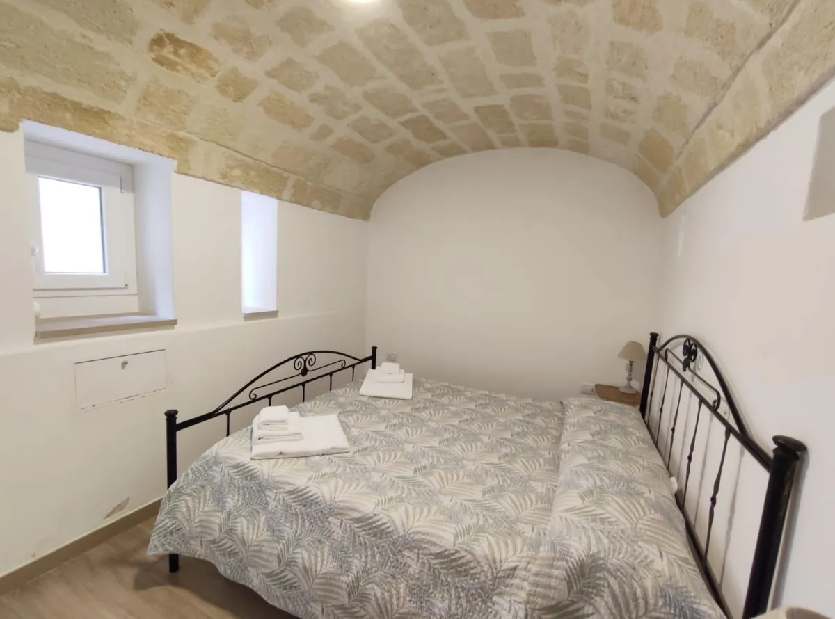 A rendere questa abitazione unica sono i dettagli storici: la chianca originale e le iconiche volte a vela, che conferiscono carattere e fascino senza tempo.