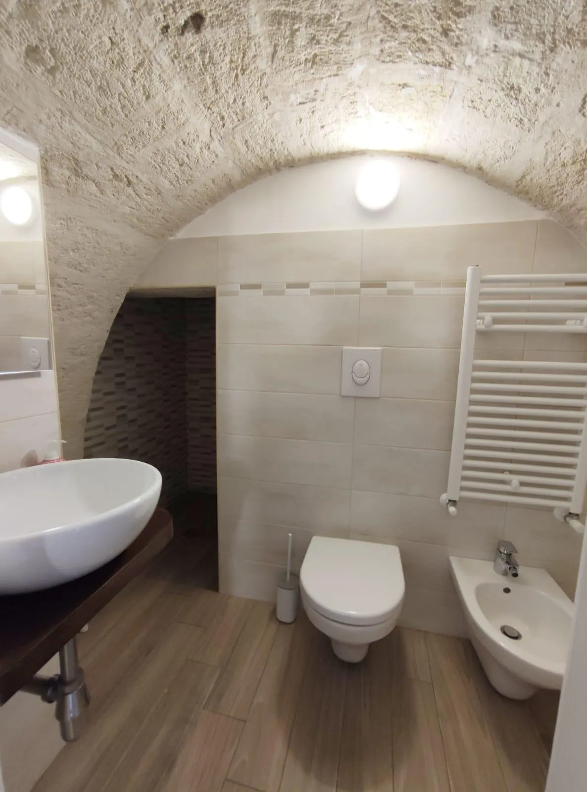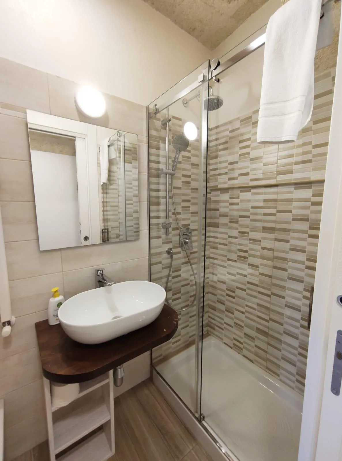 Il cortiletto interno attrezzato con doccia offre un’oasi privata per momenti di relax all’aria aperta.